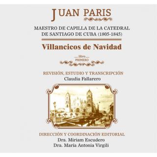 Sinopsis: Breve estudio biográfico y de contexto histórico sobre Juan Paris, músico de origen catalán y maestro de capilla de la Catedral de Santiago de Cuba entre 1805 y 1845, considerado el autor de los más antiguos manuscritos con música para el culto católico del siglo XIX que se conservan en Cuba. Reproduce las partituras de ocho villancicos escritos en 1805 y 1807 después de haber sido sometidas a una rigurosa labor de revisión y transcripción. Las ocho piezas se presume que son las primeras obras de este autor publicadas en Cuba. ISBN: 978-959-7216-37-7